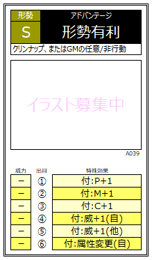 - 判定で求めた「威力」と同じ値で、「属性が●」の威力が追加で発生し、障害の除去に使用できる。