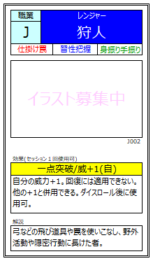 オンラインセッションなど、カードの準備に手間取る環境向けにキャラクターシートを用意した。